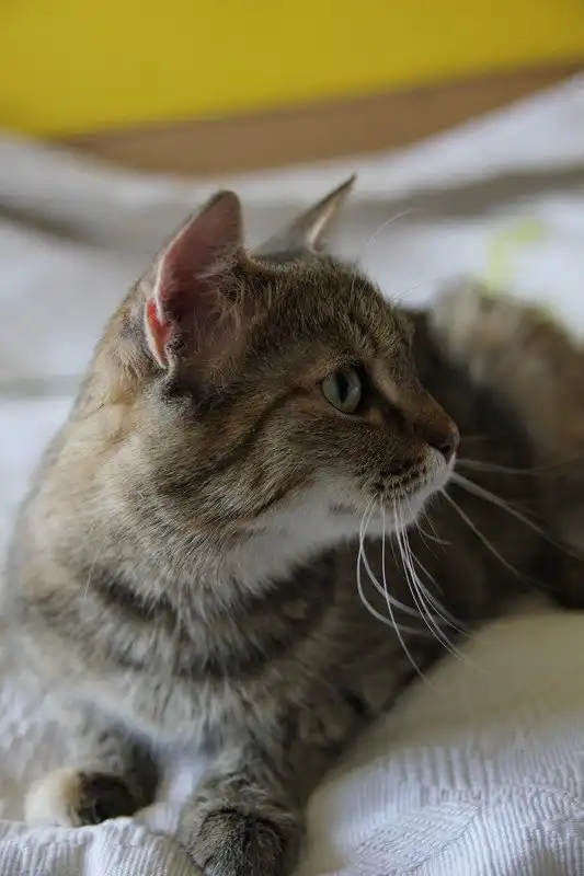 Дина - на первый взгляд обычная классическая полосатая кошка, но полоски ее собраны из мелких крапинок, серых, темных, белых и рыжих. Немного похоже на окрас абиссинских кошек. Ласковая, добрая девочка, немного индивидуалистка, но с другими кошачьими живет в мире. Питается готовыми кормами, пользуется лотком. Стерилизована.