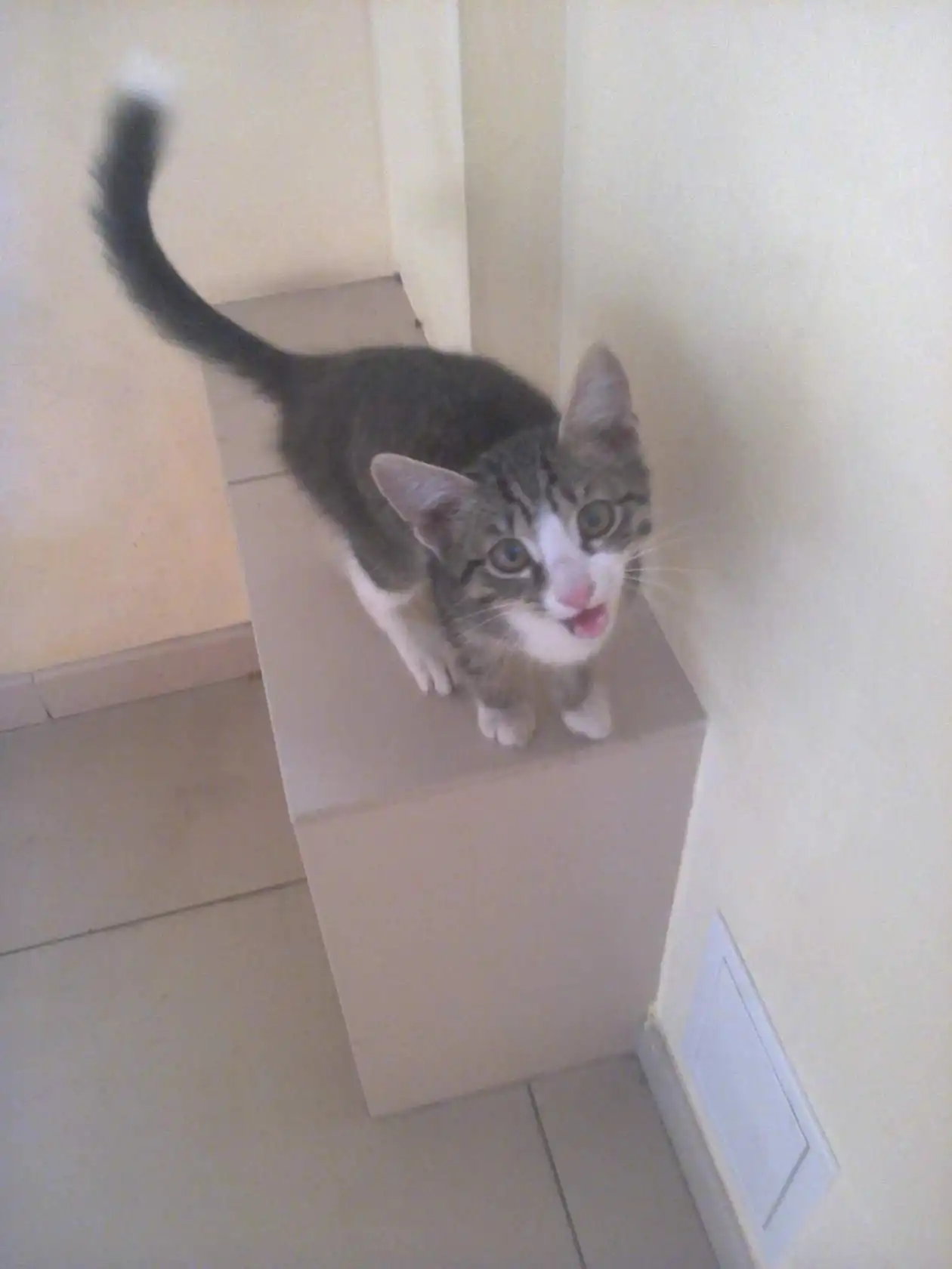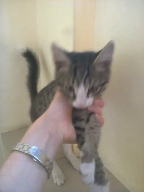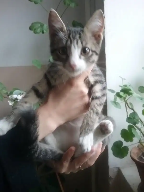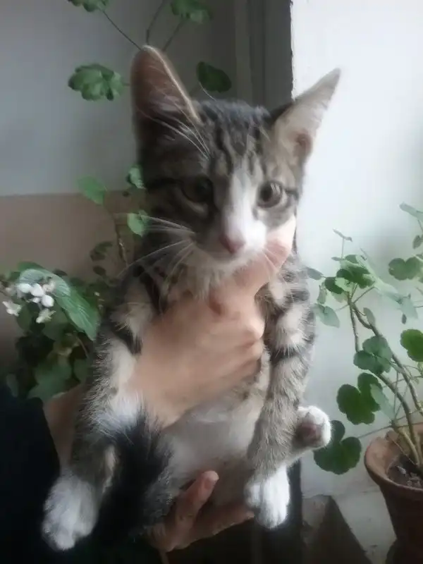 Котенка (мальчик, 3 мес.) подкинули на территорию д/с №5, который на Елизаровых. Малыш целые сутки там пробегал на холоде, все подвалы в д/с замурованы, даже негде погреться, а ночь провел на дереве. Утром повела детей в сад и услышала жалобное мяуканье, которое доносилось с дерева, и никто не подошел и не помог, пока сама не пошла искать лестницу.