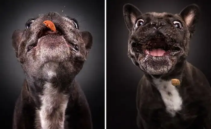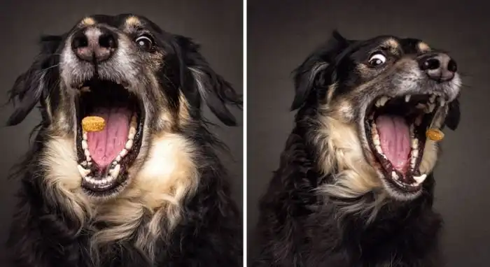 Немецкий фотограф Кристиан Виелер (Christian Vieler) придумал очень интересный фотопроект, в рамках которого он снимает собак, пытающихся поймать брошенное им лакомство. В этот момент все собаки выглядят по-своему, но в большинстве случае они становятся милыми и забавными.