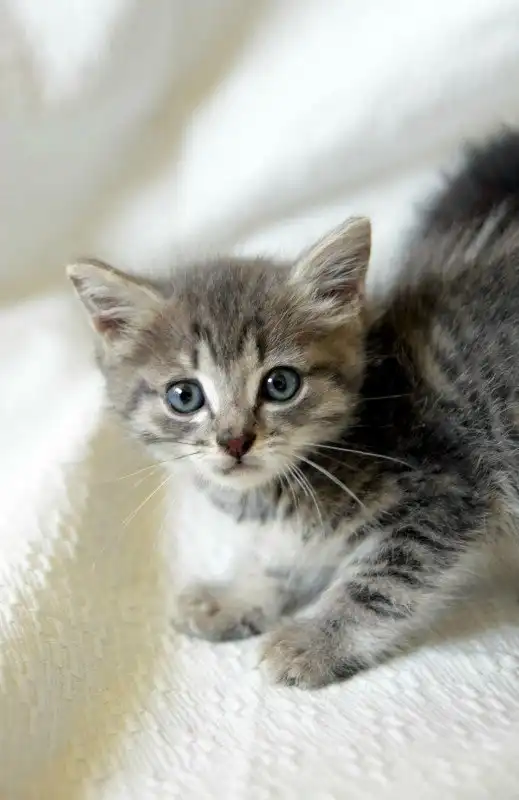 Котенок, мальчик, возраст примерно 1,5 мес. Окрас полосатый голубой, очень красивый и нежный. Котенка подкинули в приют. Ласковый, добрый, веселый малыш, обожает внимание. Питается сухим и влажным кормом для котят, отлично знает лоток. Имеет сертификат на льготы при кастрации.