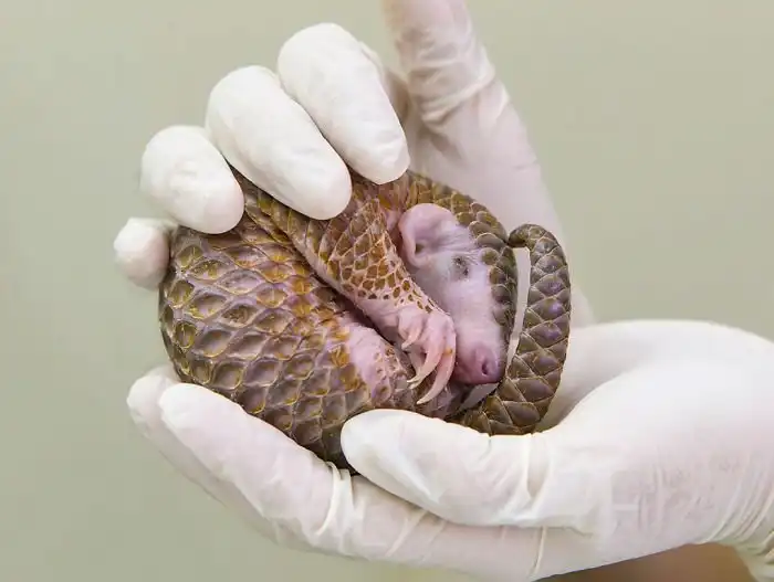 Знакомьтесь, этих милых зверушек называют панголинами и они являются единственными из нынеживущих млекопитающих, тело которых покрыто чешуей. Панголины появились около 80 миллионов лет назад, но сейчас все оставшиеся 8 видов занесены в Красную книгу Международного союза охраны природы и находятся под угрозой исчезновения. В случае опасности панголины сворачивают в клубок и выделяют неприятно пахнущий секрет, как скунсы.