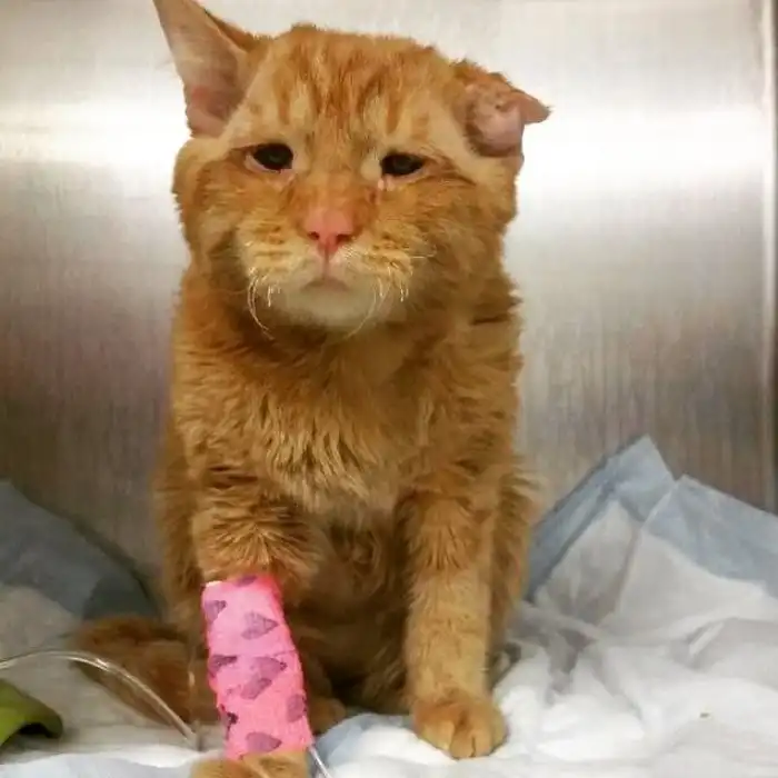 У него был поврежден позвоночник, несколько глубоких ран и проблемы с ушами.