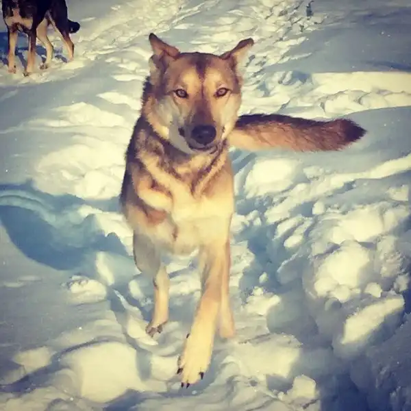 Агата очень активная, бегает на ровне с обычными собаками, не уступая им в скорости!