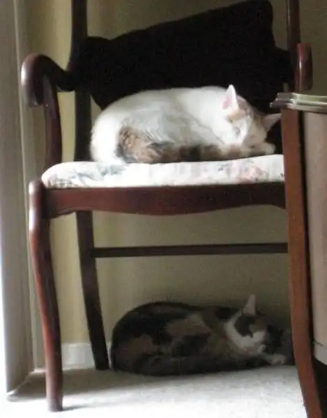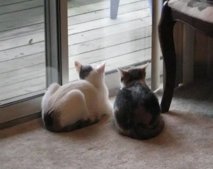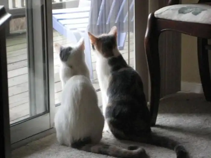 Эти кошки по кличке Калли и Хлоя являются сестрами, и они были неразлучными с самого момента своего рождения. Животные проводят друг с другом все свое время, а потому принимают одинаковые позы и в точности копируют движения друг друга, делая все в унисон.