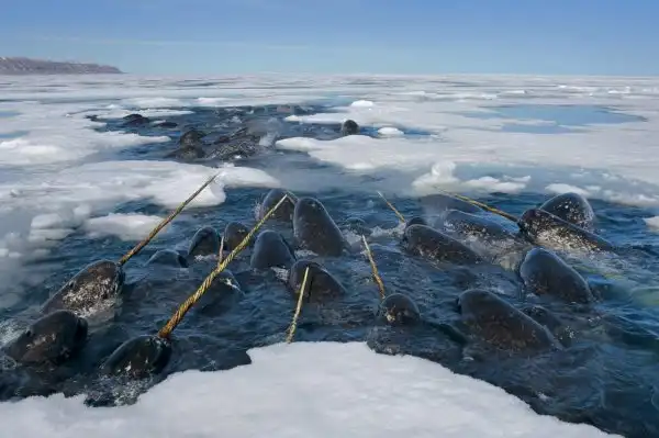 Второе место занимают косатки. Эти могучие и свирепые хищники безжалостно расправляются с нарвалами, если те оказываются у них на пути. Как следствие, животные с бивнями стараются забраться как можно дальше в холодные воды. Они также облюбовывают узкие и длинные фьорды, куда огромные косатки предпочитают не заплывать.