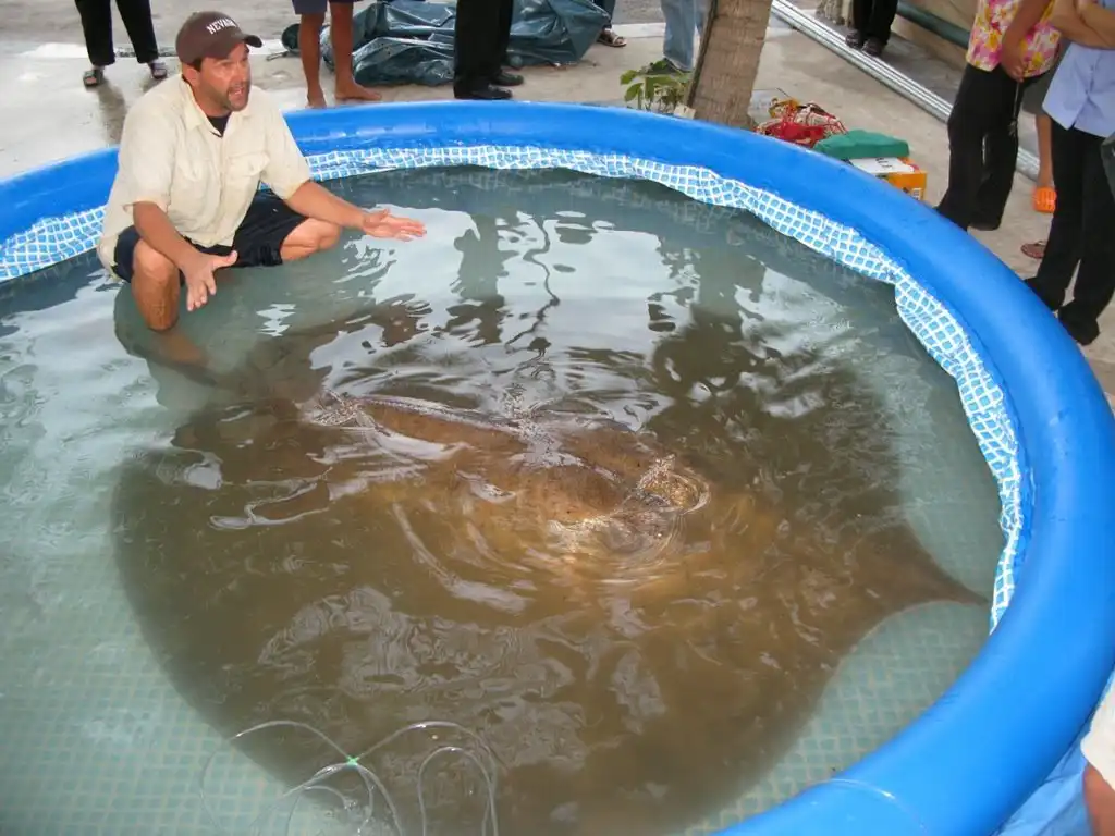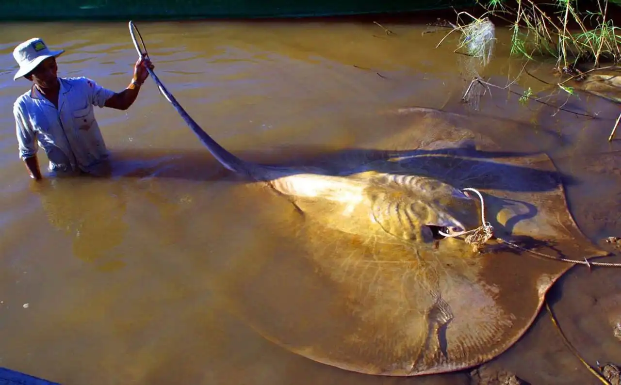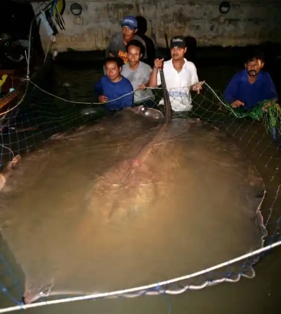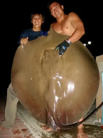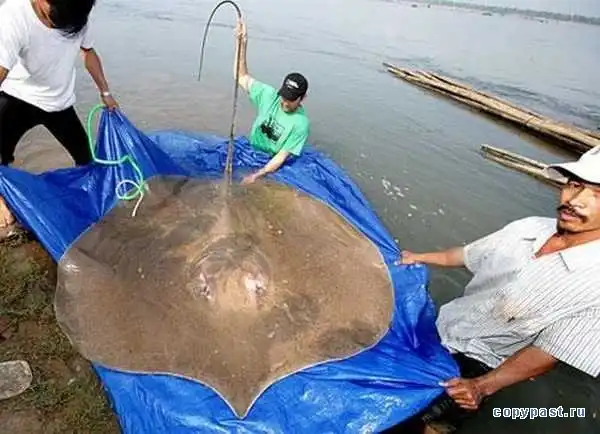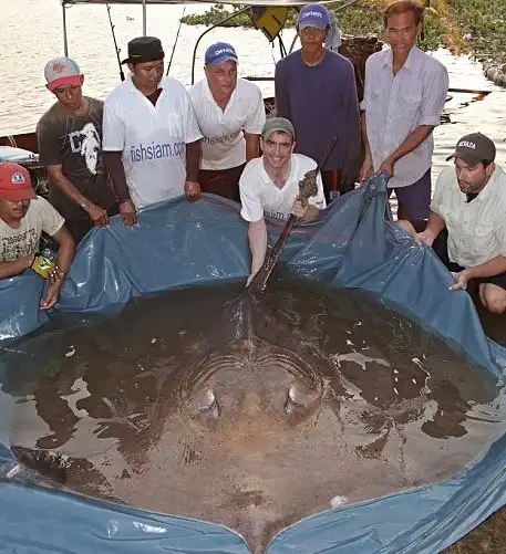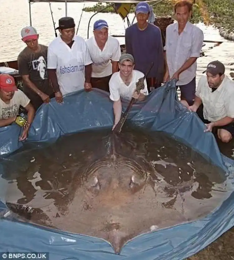 Гигантскиого шипохвостого ската отловили в водах реки Маеклонг. Почти полтора часа рыбаки боролись с ним, поднимая на борт. Когда же монстра все же удалось затащить в лодку, исследователи пришли в восторг: им посчастливилось заполучить самый крупный за всю историю экземпляр. Вес его составил 350 кг, а размеры — два на два метра, не считая трехметрового хвоста.