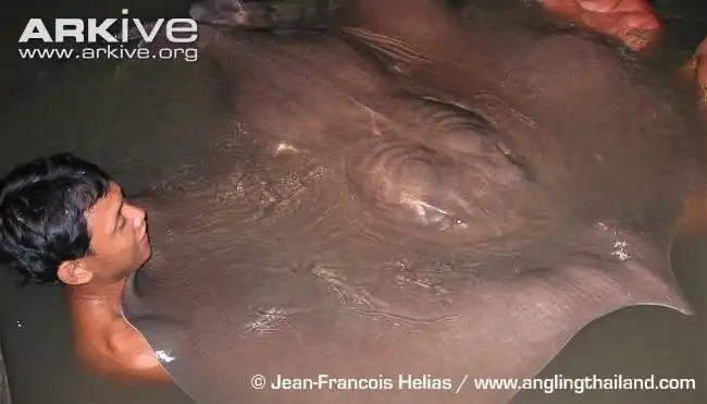 Все мы знаем о скате манта или гигантском «морском дьяволе» — самом большом в мире скате, чья ширина тела может достигать 7 метров. А вот про его гигантских пресноводных собратьях мало кто слышал. В длину они могут вырастать до 4,6 метров, а в ширину достигать 2 метров - Гигантский пресноводный скат или скат-хвостокол (лат. Himantura Chaophraya) (англ. Giant Freshwater Stingray)