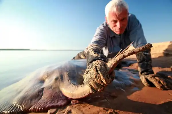 Гигант оказался самкой, притом беременной. С дамой обошлись бережно. Специалисты, работающие в рамках программы Международного природоохранительного союза, предусматривающей сохранение исчезающих видов рыб, поместили ее в бассейн, где взяли образцы ДНК. После безболезненной процедуры мамашу отпустили обратно в реку.