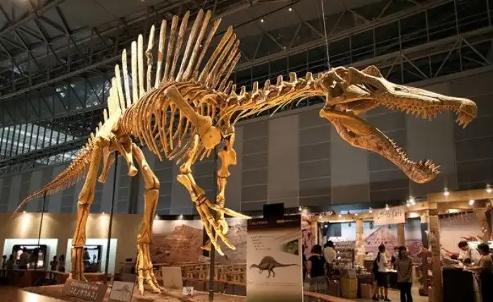 Спинозавр, который был крупнее тираннозавра, является самым крупным плотоядным динозавром из когда-либо существовавших. Длина его тела составляла 18 метров и весил он до 10 тонн. Спинозавр съедал тонны рыбы, черепах и даже других динозавров. Если бы этот ужас жил в современном мире, то нас вероятно бы не было.
