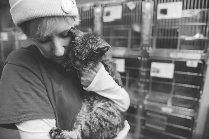 Кота с многочисленными язвами на коже, который попал в приют в Лос-Анджелесе, никто не хотел брать на руки — сотрудники боялись заразиться. Но волонтёр по имени Элейн услышала его мяуканье и взяла животное на руки даже без перчаток, на что он ответил любовью и преданностью. Болезнь Валентино оказалась не заразной.