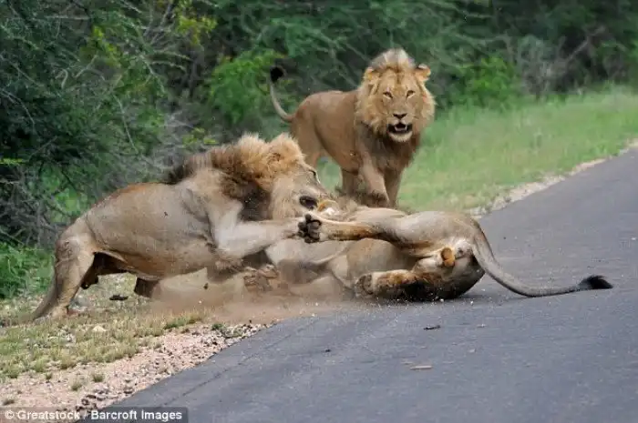 28-летний турист Джастин Торн отправился на отдых в Национальный парк Крюгера в ЮАР и не пожалел. Мужчина стал свидетелем невероятной схватки трех львов и успел сделать несколько впечатляющих фотографий.