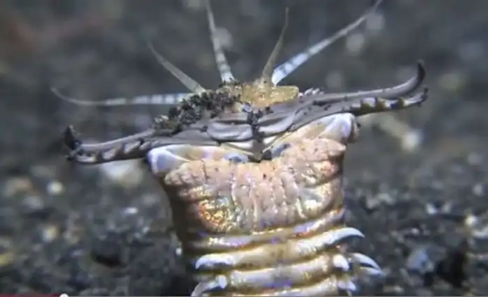 Этот многощетинковый червь вырастает до трех метров в длину! Его тело переливается всеми красками радуги, однако он вполне способен замаскироваться на дне моря, поджидая добычу. Когда какая-нибудь рыбешка проплывает мимо, он набрасывается на нее и мощными челюстями разрывает ее пополам с одного укуса. Кроме того, червь Боббита обладает сильными клешнями, также способными рассечь жертву одним ударом. Это существо очень агрессивно и иногда даже набрасывается на дайверов. Благодаря агрессивности и остроте челюстей оно и получило свое название: Лорелия Боббит - известная "преступница страсти", отсекшая у мужа пенис в припадке ревности.