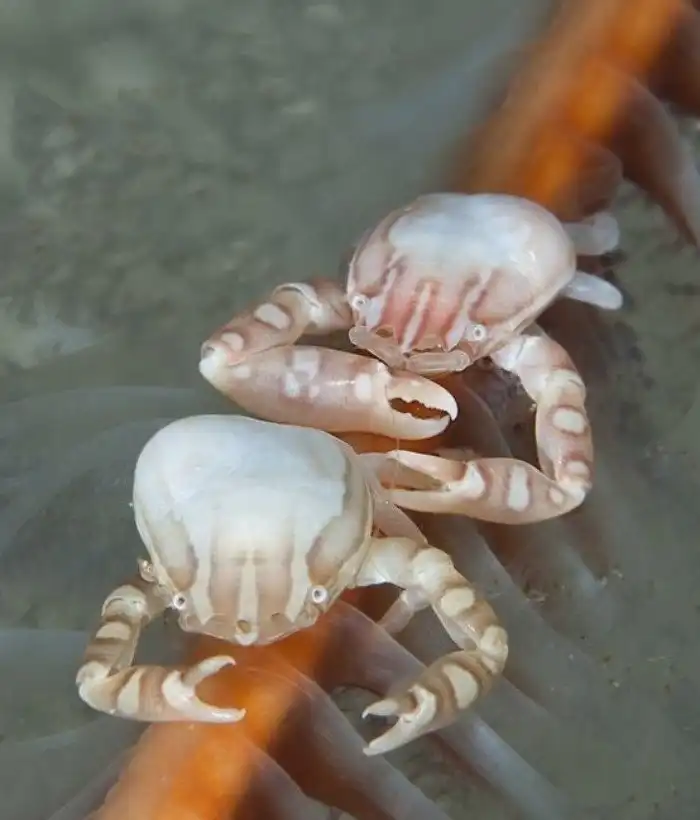 Маленькие крабы рода Lybia больше известны как крабы-боксёры. Дело в том, что у них мутуалистические отношения с актиниями. Крабы держат актиний в клешнях с целью защиты. Актинии, которые сами не передвигаются, при этом имеют мобильность, для захвата щупальцами как можно больше еды, а краб использует стрекательные клетки актиний, отпугивающие врагов.