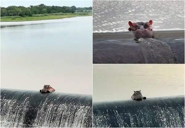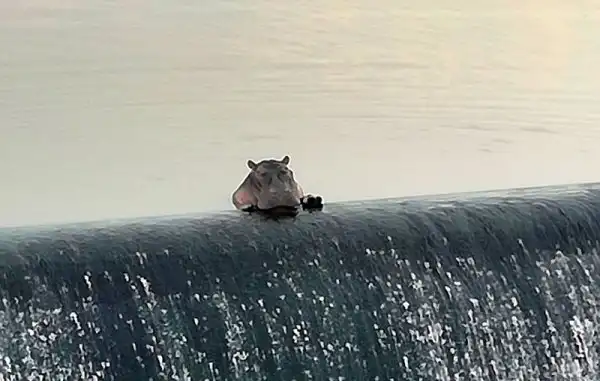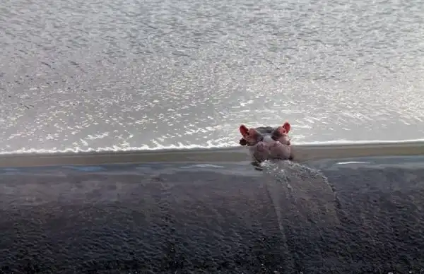 Лоу говорит: "Мы проезжаем по этой дороге как минимум 10 раз в неделю и очень часто видим этого бегемота, который отдыхает возле переливного барьера." Со стороны это выглядит, как будто бегемот расслабляется и наблюдает за проезжающими по дороге автомобилями.