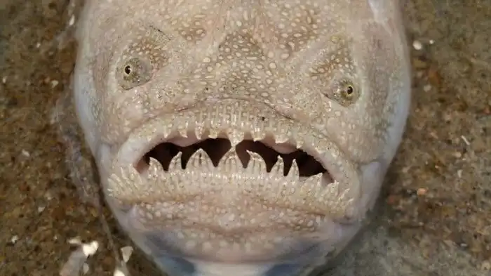 Эта глубоководная рыба - одно из немногих живых существ, способных вырабатывать эндогенный антифриз - специальную жидкость, которая позволяет ей не замерзнуть в мрачных глубинах океана. Она известна как один из самых зубастых океанских хищников, о чем несложно догадаться по ее внешнему виду: из пасти рыбы торчат 4-6 острых как бритва клыков, за которыми располагается три ряда зубов, растущих не только на челюстях, но и в глотке рыбы-волка. Впрочем, это существо весьма избирательно в еде: он поедает, в основном, моллюсков, используя клыки, чтобы разгрызать твердые раковины.