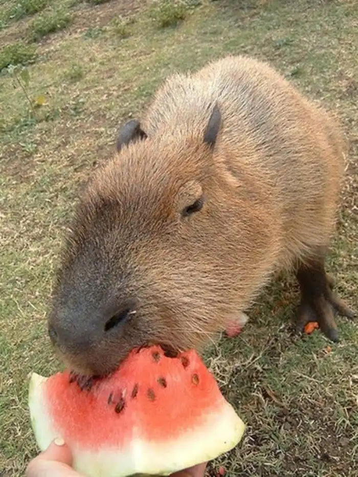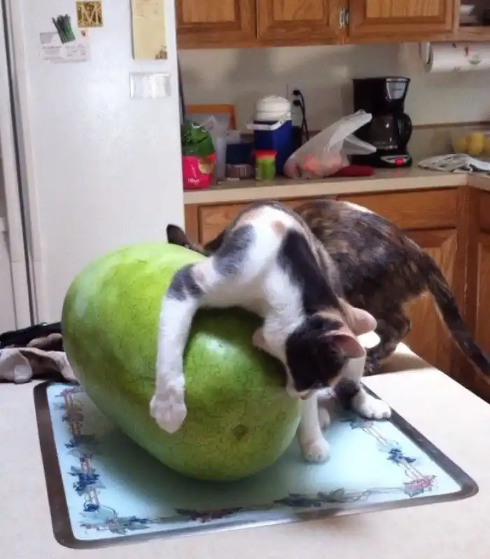 Гляньте на этого сурового хищника. Вцепился в арбуз как будто это кусок мяса