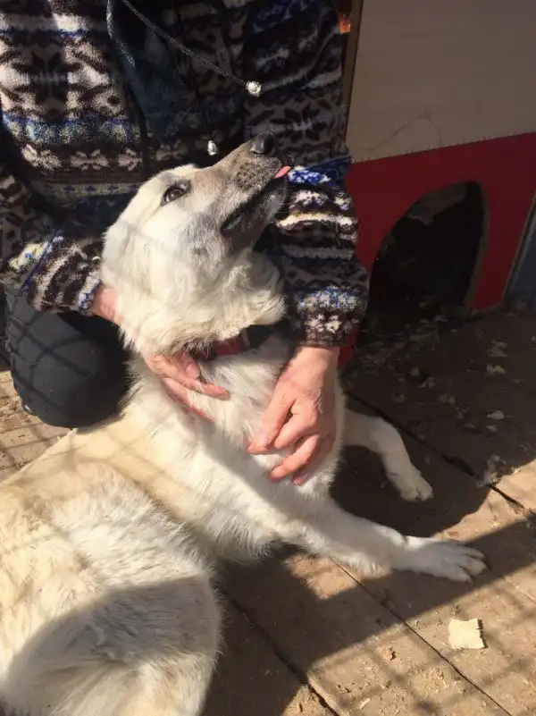 Он как и все собаки, в ожидании своего хозяина, очень тянется к людям, готов зализать человека до беспамятства, в его глазах читается "Забери меня, я буду любить тебя, я буду беспрекословной подчиняться тебе, я буду отдавать всего себя..."