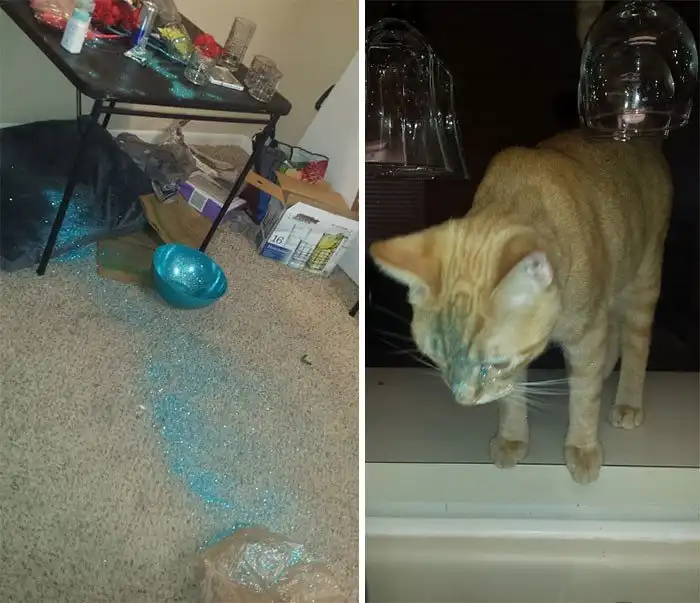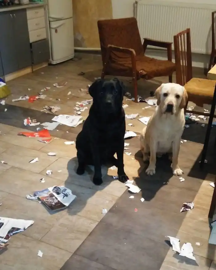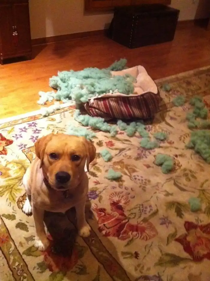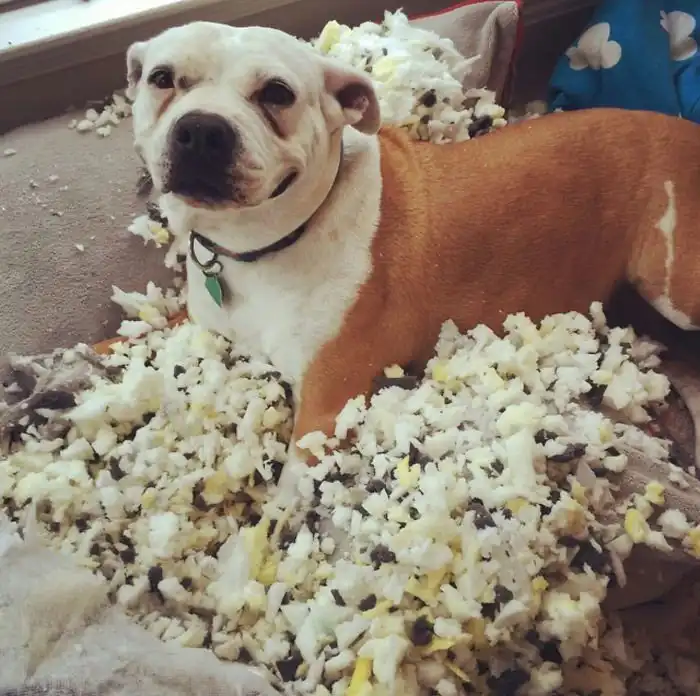 3. Собака расправилась с новой подушкой, а коты устроили себе веселье