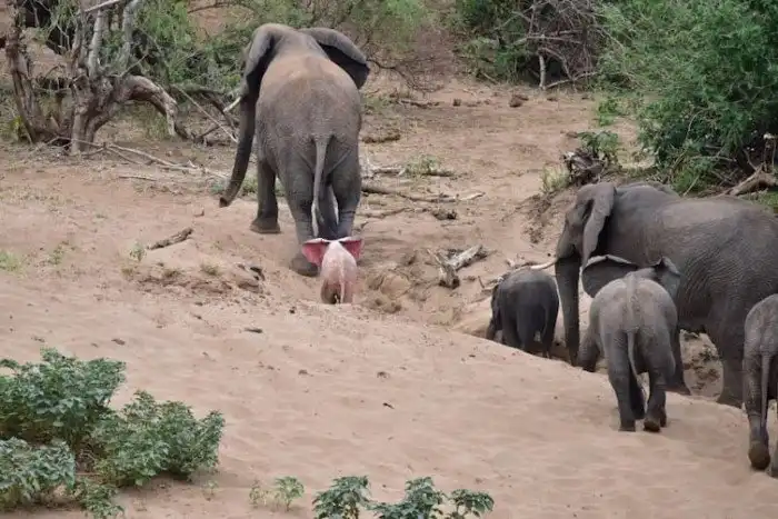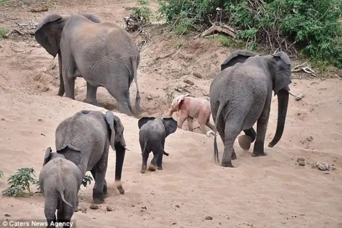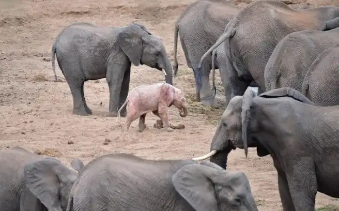 Семья туристов, приехавших в ЮАР, в национальный парк Крюгера, наблюдая за стадом слонов, неожиданно заметила настоящее чудо - следовавшего за своей матерью маленького слоненка-альбиноса. В природе подобные экземпляры встречаются чрезвычайно редко, и возможность понаблюдать за диковинкой предоставляется далеко не каждому.