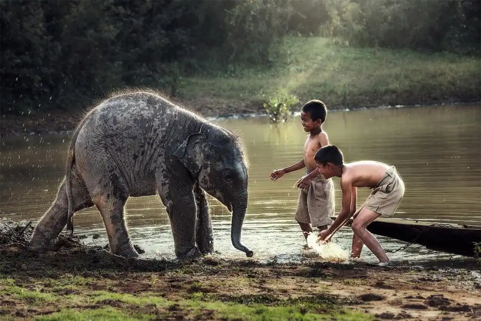 Если не считать человека, слон является 4-м самым умным животным на Земле по версии Animal Planet. А заодно и самым крупным наземным животным, обитающим на Земле. По пока слоны маленькие, они очень забавны.