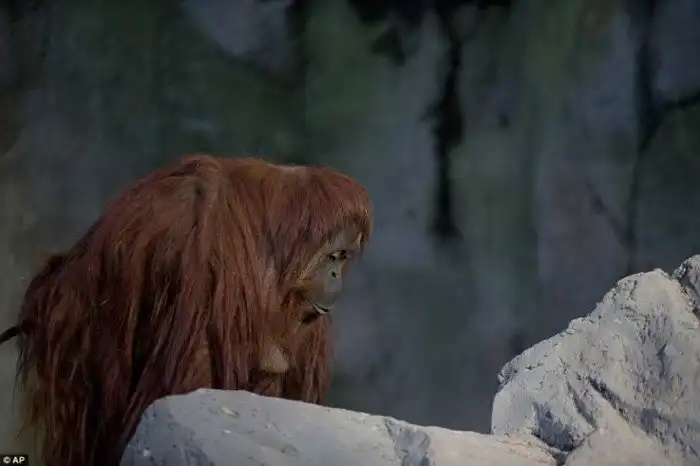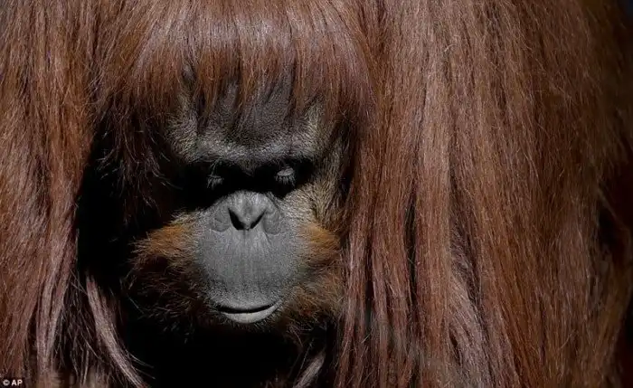 Орангутан Сандра разглядывает немногочисленных посетителей.