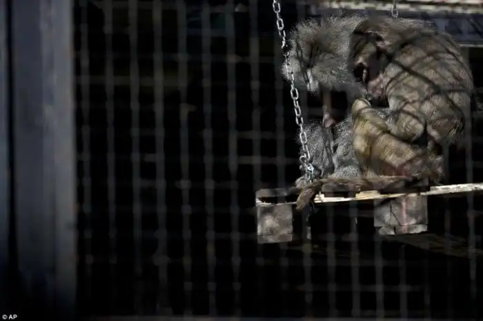 Самка бабуина с детенышем тоже продолжает жить в бывшем зоопарке, условия в котором, по мнению зоозащитников, просто антигуманны.