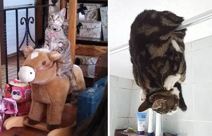 Эта кошка мяукает до тех пор, пока ее не покачают на лошадке