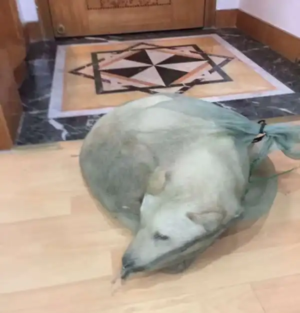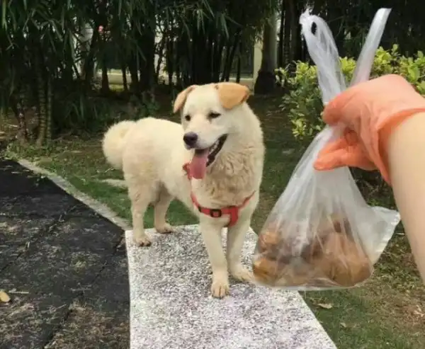 Спустя месяц собака уже привыкла к новому хозяину.