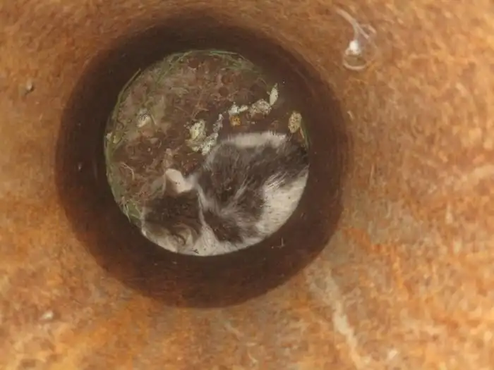 Мяуканье услышали еще 5 июня, но не могли обнаружить, откуда идет звук. Как оказалось, котенок находился в трубе диаметром 20 см под опорой. Вытащить его пытались местные жители и зоозащитники, которые опускали в яму толстую веревку, чтобы он вылез по ней обратно, опускали корзину с едой, надеясь, что котенок залезет внутрь, вслепую орудовали сачком. После того как все попытки оказались безуспешными, позвонили в управление дорожных работ и объяснили ситуацию. Там решили помочь и направили на место рабочих и автокран. Опору демонтировали и достали животное. Его показали матери, после чего отвезли на осмотр к ветеринару, сейчас котенку ищут новых хозяев.