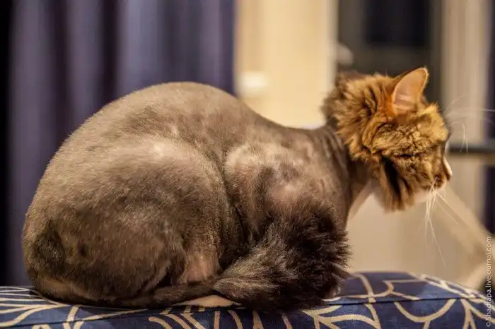 Еще пример — большой котик сервал во время подготовки к операции был тщательно побрит, что позволяет сравнивать состояние меха и шкурки