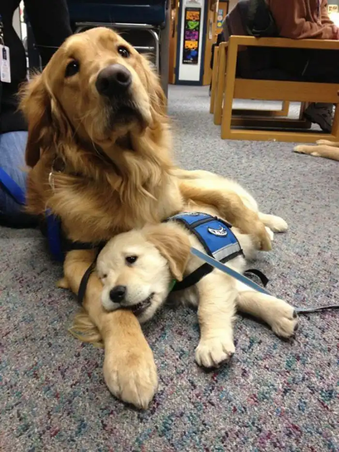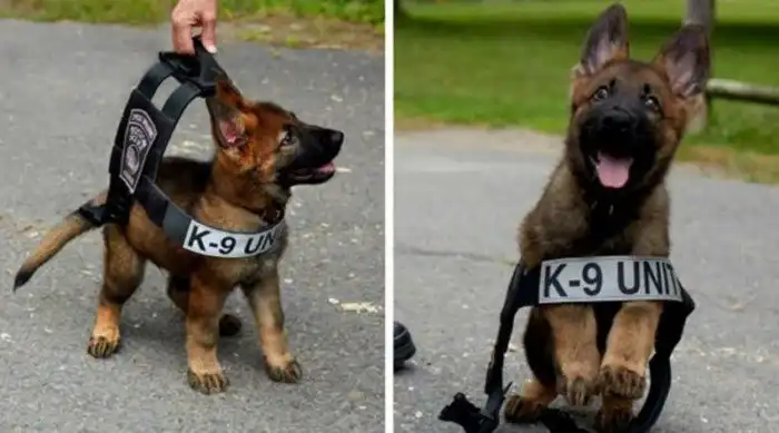 7. Это первый тренировочный день щенка. Пуленепробиваемый жилет ему велик… пока