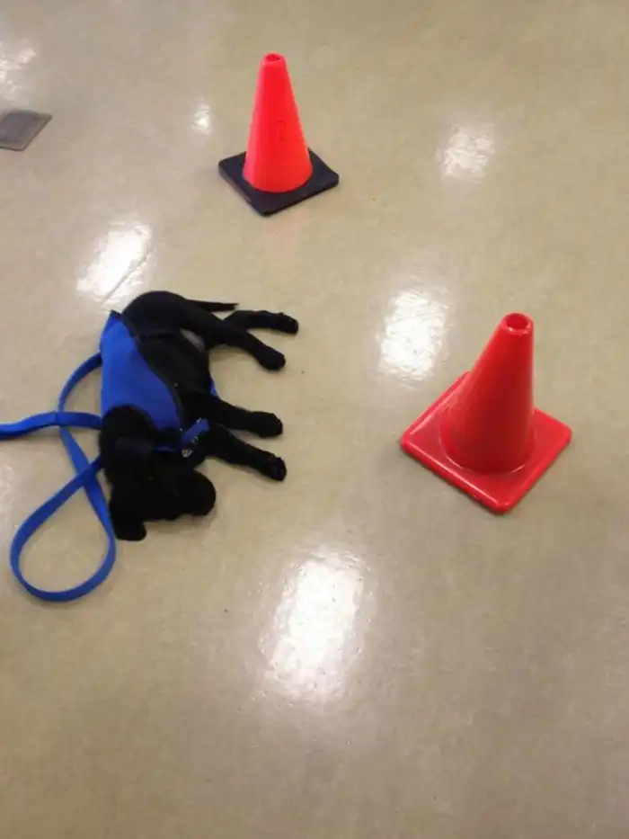 12. Щенок вздремнул на тренировке, и вокруг него поставили дорожные конусы, чтобы никто не потревожил его сон