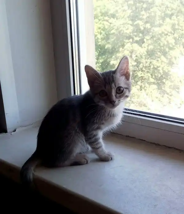 Луна - серо-голубая полосаточка, любопытная, самостоятельная и любвеобильная.