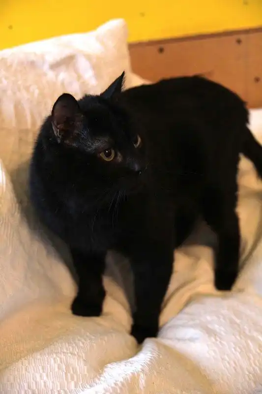 Бэтмен - эксклюзивный совершенно черный кот без единой белой шерстинки с зелеными глазами. Возраст примерно 5 лет. Найден на улице. Кот коммуникабельный, ласковый, спокойный. Кот питается готовыми кормами, пользуется лотком. Кастрирован.