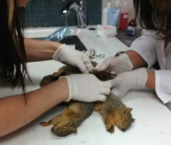 В клинику канадского города Реджайна принесли огромный клубок из шести белок, которые сплелись хвостами и пытались двигаться вместе, как одно животное. По словам ветеринара Стивена Крузениски, белкам повезло, что их смогли распутать, в противном случае пришлось бы ампутировать хвосты.