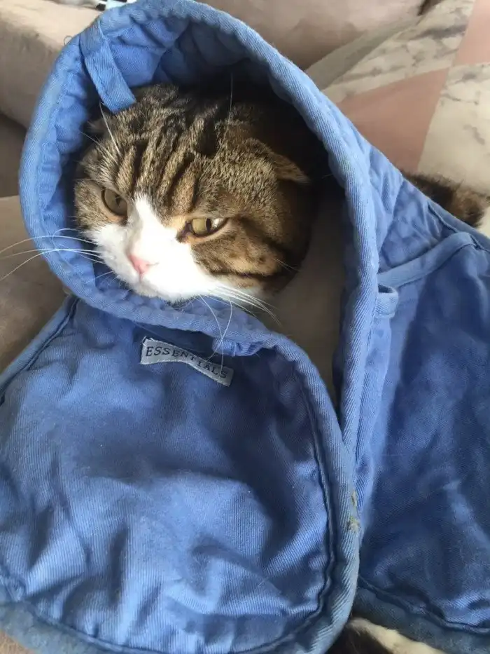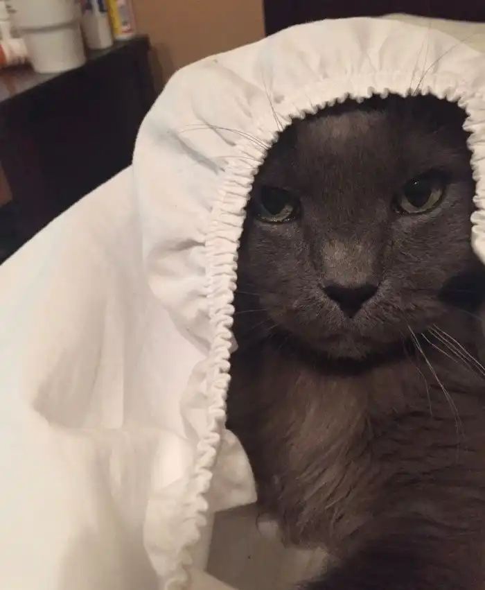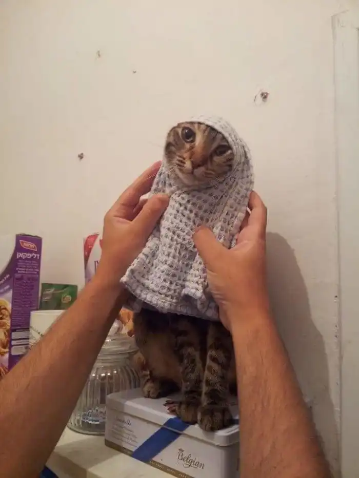 Некоторые фанаты, не мудрствуя лукаво, просто набрасывали на кота что оказалось под рукой: полотенце, плед, пижаму, коврик, собственную одежду и головные уборы.