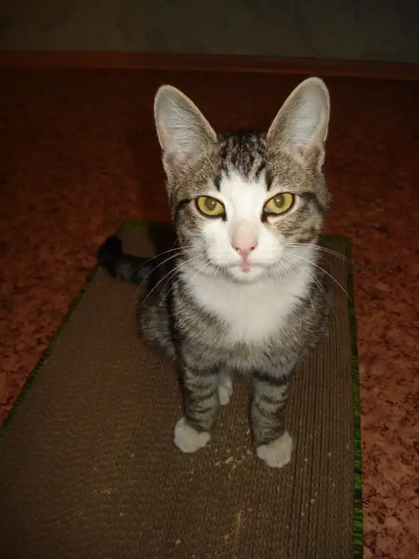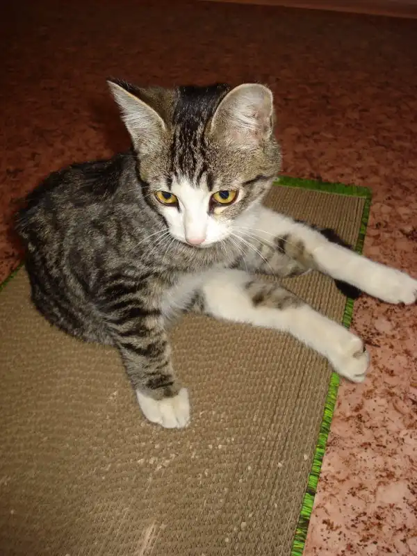 Пристраиваю, т.к. дома уже есть кошка, которая явно не обрадовалась появлению нового «хвостатого», поэтому котенок находится в закрытой комнате.
