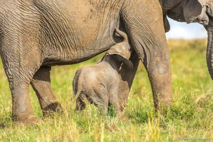 Длина хобота взрослой особи в среднем около 2 метров! «Управлять» своим хоботом слоненок учится около полугода. Взрослый слон может поднять хоботом предмет размером с булавку.