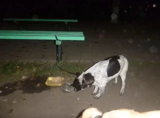 Прогуливаясь по парку поздним вечером, мужчина обнаружил собаку, которая была привязана к лавочке. Рядом с ней находилось несколько пустых контейнеров от еды и воды, а к скамейке был прикреплен еще и какой-то лист бумаги. Собака не огрызалась и не лаяла, а сразу начала давать лапу и скулить.