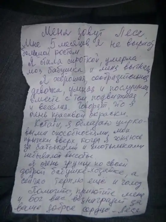 Прочитав записку, мужчина сразу же позвонил в Службу спасения животных, работники которой довольно быстро прибыли на место событий. Обследование показало, что собака абсолютно здорова, а все описанное в записке - оказалось правдой. Леся действительно очень жизнерадостная и веселая собака, которая скоро найдет свой новый дом при помощи волонтеров.