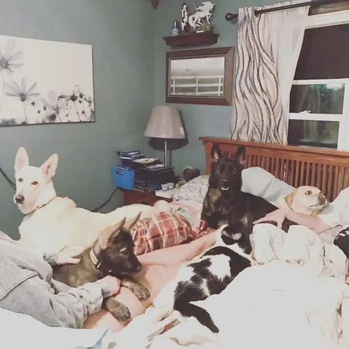 6. 2 собаки и 5 кошек всегда спят на хозяйской кровати