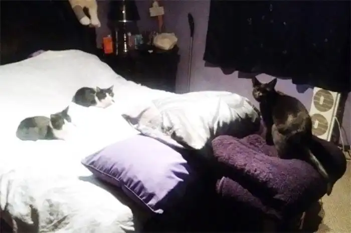 33. Поверить не может, что его хозяйка выбрала мужчину с двумя кошками
