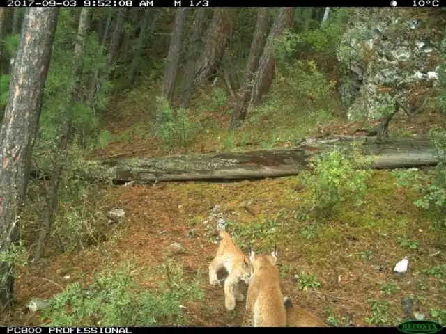 Эти кадры были сделаны в государственном природном заповеднике красноярского края "Столбы" при помощи автоматической лесной камеры. В ее объектив попала рысь с котятами, что очень обрадовало работников заповедника. В прошлый раз выводок рыси в этих местах был отмечен только лишь зимой 2014-2015 года, а теперь вновь популяция этого редкого животного пополнилась детенышами. Судя по снимку, их возраст не более 4х месяцев, а заботливая мать уже учит детенышей выживать в дикой природе.