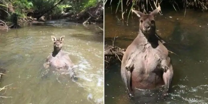 Фотограф из Западной Австралии запечатлел на фото купающегося в реке кенгуру. Казалось бы, этими сумчатыми на континенте никого не удивить. Но этот парень оказался необычным. И его фото можно спокойно помещать на обложку журнала про бодибилдинг.