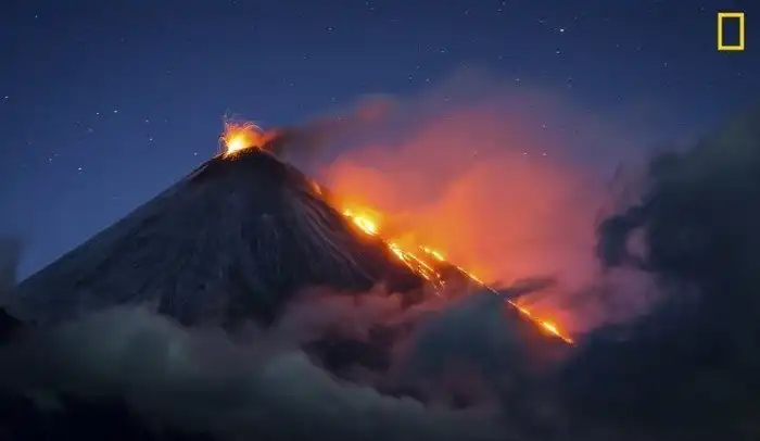 Извержение на Ключевской сопке, самом высоком действующем вулкане Евразии. Фотограф - Владимир Войчук.