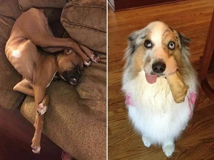 Наши домашние питомцы могут быть очень смешными, о чем свидетельствуют фотографии этих собак, застывших в забавных позах или с забавной гримасой.