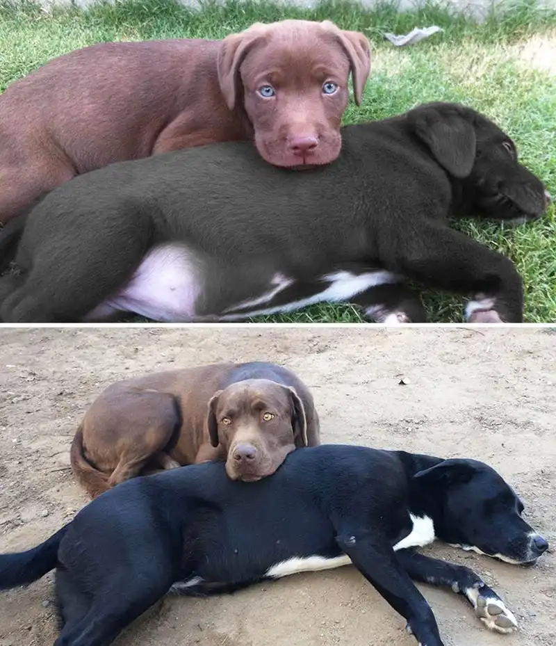 Любящие хозяева поделились фотографиями своих питомцев "до и после", где на первом фото - совсем еще щенки, а на втором - уже подросшие собаки. Давайте посмотрим, в каких красавцев они выросли!
