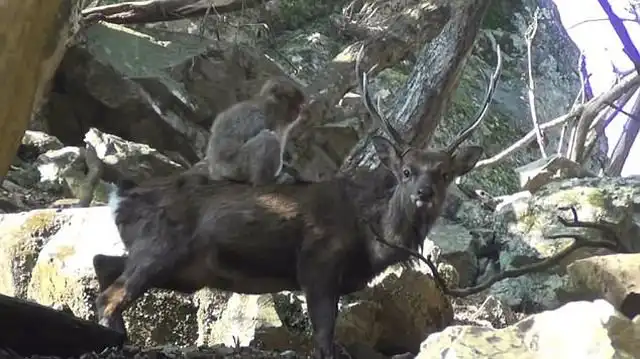 В Японии замечены случаи сексуального удовлетворения макак с помощью оленей. Молодые самки макак трутся своими гениталиями о шерсть оленей, достигая тем самым удовлетворения своих сексуальных потребностей. Стоит отметить, что это происходит также часто, как и однополые контакты у самок обезьян. По мнению учению, так ведут себя самки, которых отвергли самцы их вида. Подобные контакты при этом могут продолжаться от нескольких минут до двух часов.