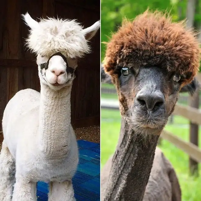 Альпаки - животные семейства верблюжьих - высоко ценятся за высококачественную шерсть, из которой делают одежду, пледы и одеяла. После того, как альпак избавляют от дорогой и мягкой шубы, выглядят они весьма забавно.