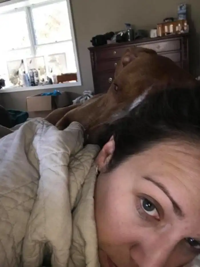 “В первый день, когда он только у нас появился, я лежала с простудой, — рассказывает Бонд. — Он почувствовал, что со мной что-то не так, и не отходил от меня ни на шаг. Весь день пролежал со мной на диване. И сейчас он ходит за мной, как тень, куда бы я ни пошла. Следит, чтобы мне не угрожала никакая опасность. Вуди любит свернуться калачиком на кровати и положить голову мне на грудь”.
